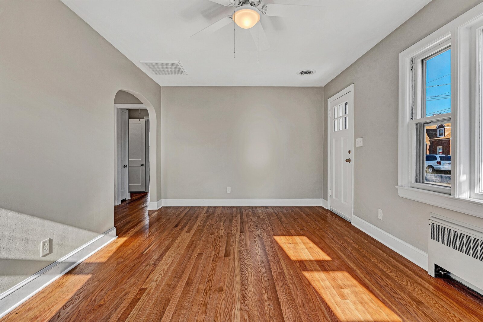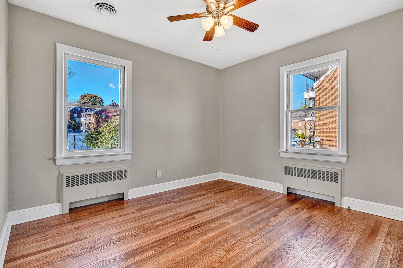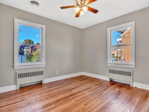- Two spacious bedrooms with refinished hardwoods, ceiling fans/lights, ample closets
