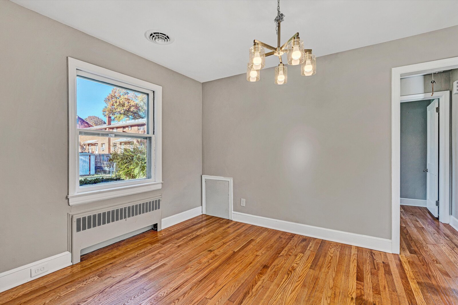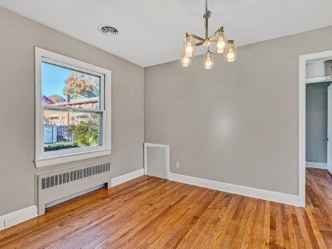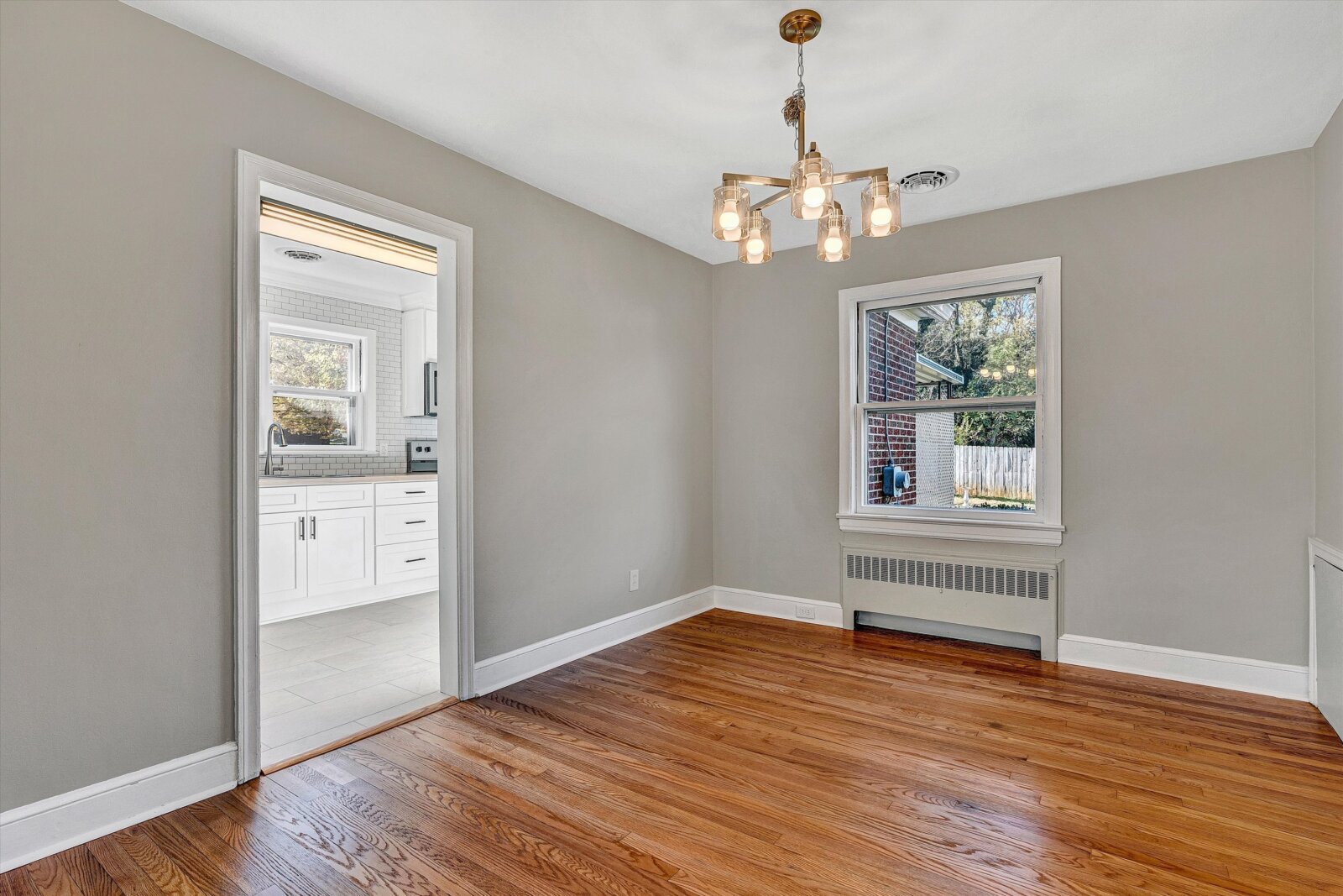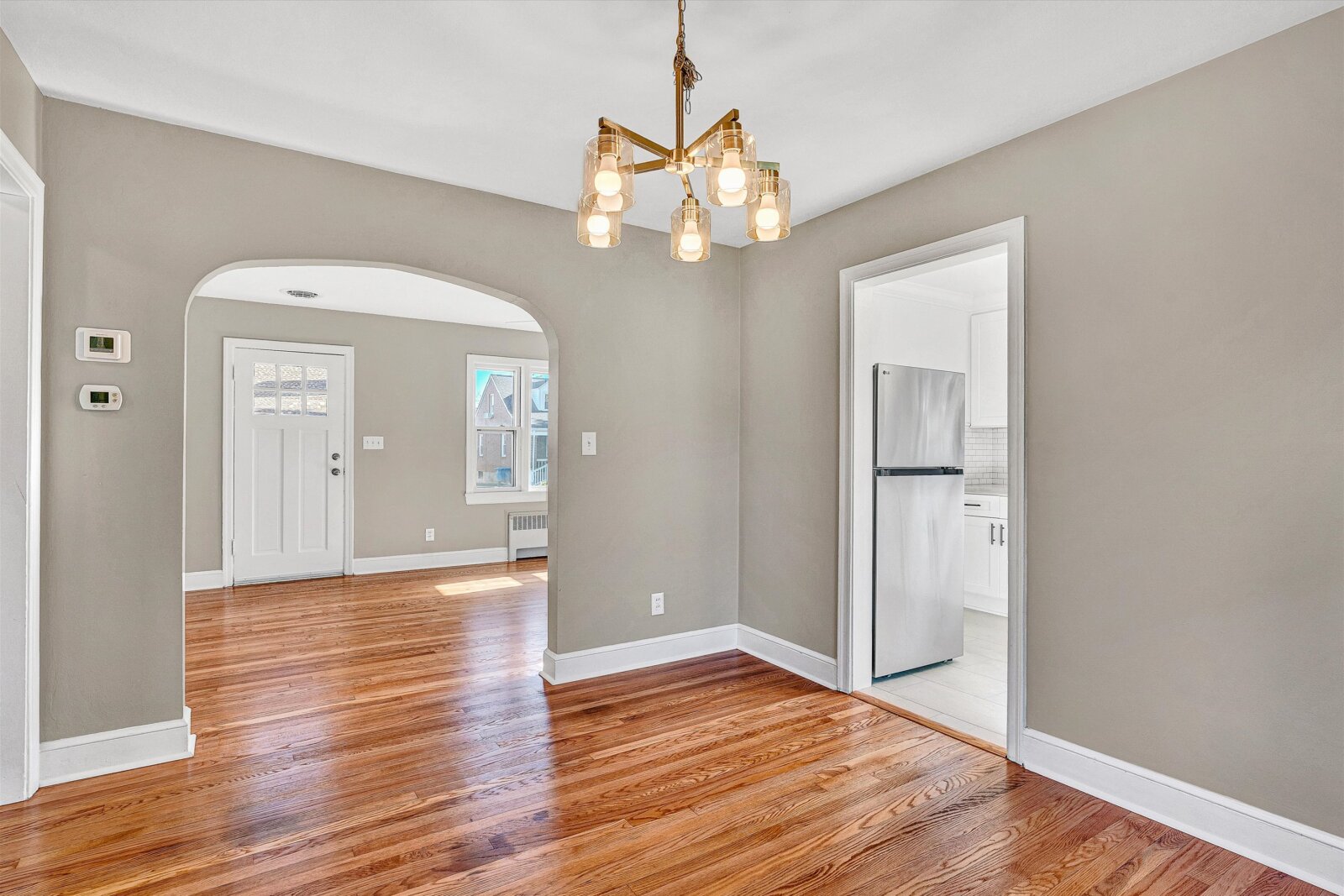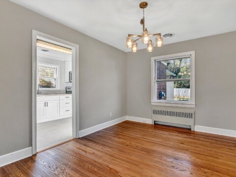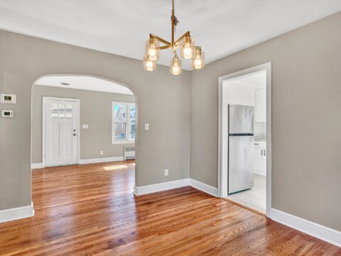 - Dining room with new chandelier and hardwoods, open to living room and kitchen